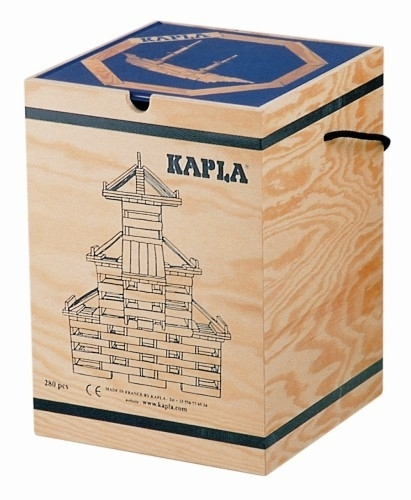 Het bevat een Kapla kunstboek met voorbeelden en 280 perfecte Kapla latjes in een houten bak. De bak is op unieke manier geconstrueerd, zonder spijkers, schroeven of bevestigingsmateriaal.