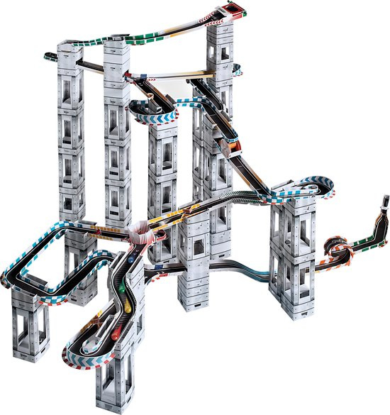 Bouw de ultieme Marble Racetrack knikkerbaan met deze nieuwe set. Eenvoudig te bouwen, de kinderen zullen een ontploffing hebben in het verkennen van fysica en dynamiek, terwijl ze bouwen aan een super-knikkerbaan van plezier. De knikkerbaan van stevig karton wordt 9 meter lang, bevat 64 vellen waarvan 114 kartonnen onderdelen gemaakt worden en 5 knikkers. Geschikt voor kinderen vanaf 10 jaar.