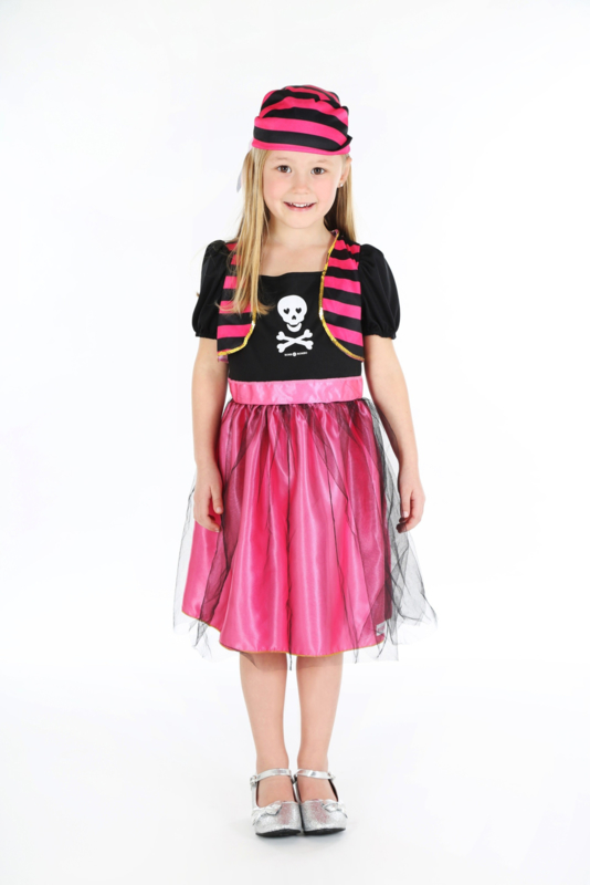 Mooi en stoer piraten verkleedsethe voor meisjes! Het setje bestaat uit het piratenjurkje + bijpassende bandana.