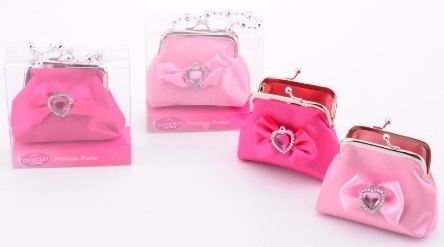 Lief Prinsessen Portemonneetje roze met hartsteentje, strikje en knip sluiting. Een echte prinses bewaart haar centjes en diamantjes in dit lieve portemonneetje!