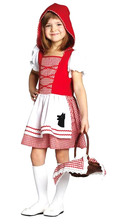 Met deze vrolijke verkleedjurk ben je zeker niet bang voor de boze wolf. Het kostuum bestaat uit een jurk met schortje en een cape met muts. In deze jurk ga je graag koekjes brengen bij grootmoeder tijdens carnaval een kinderfeestje of themafeesten op school!