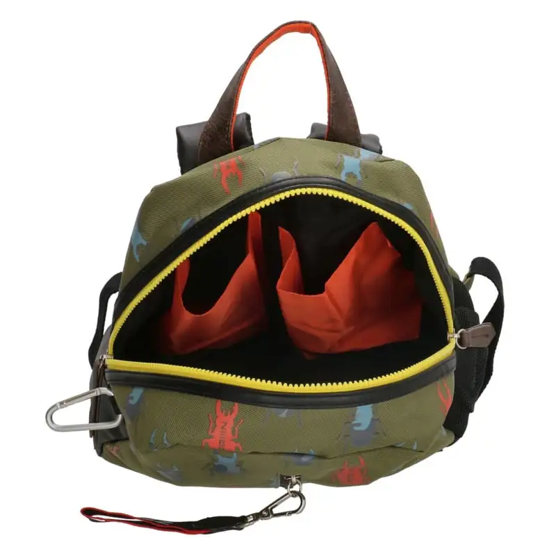 Alle favoriete sporten van de boys staan op deze stoere grijze canvas rugzak. De tas heeft een stevige neongroene blokrits met 2 sluitingen. Voorop zit een extra rits met daar achter een opberg vak, afgewerkt met een leuke sleutelhanger. De rugzak is te dragen met aan de boven kant het pu leren handvat dat afgewerkt is met een vrolijke kleur aan de binnenkant. Ook de verstelbare schouderbanden van pu leer gecombineerd met mesh is lekker te dragen op je rug. Handig is het kleine opberg vak aan de zijkant van mesh. Binnenin bevinden zich 2 drinkbekervakken. De tas is zwart gevoerd met achterop het handige naamlabel.